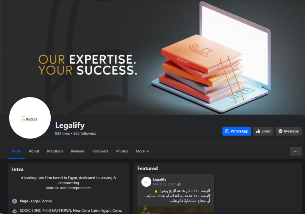 “Legalify” مكتب محاماة كبير شغله الأساسي تأسيس الشركات، يسوّي عقود الشراكة، وكمان عقود التعاون المشترك بين الشركات الكبيرة. هدف الشركة كان واضح: بناء قاعدة عملاء متجددة بإستمرار (Leads Generation) عبر موقعها والسوشيال ميديا تجيب عملاء جادين لخدماتهم القانونية